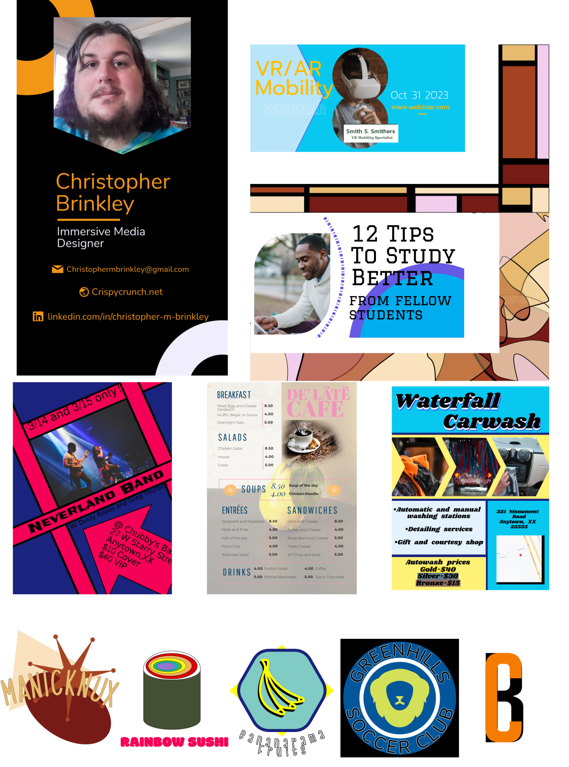 Here is a small gallery of my work! I have done work as a 3D modeler, Level Designer, Video Editor, Graphic Artist, as well as other activities! Click each category to see examples of each specialty!